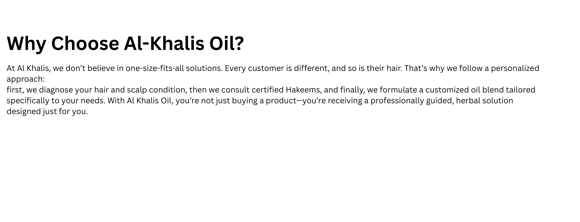 Pakistan’s first brand to diagnose your hair and create a personalized oil formula just for you.
